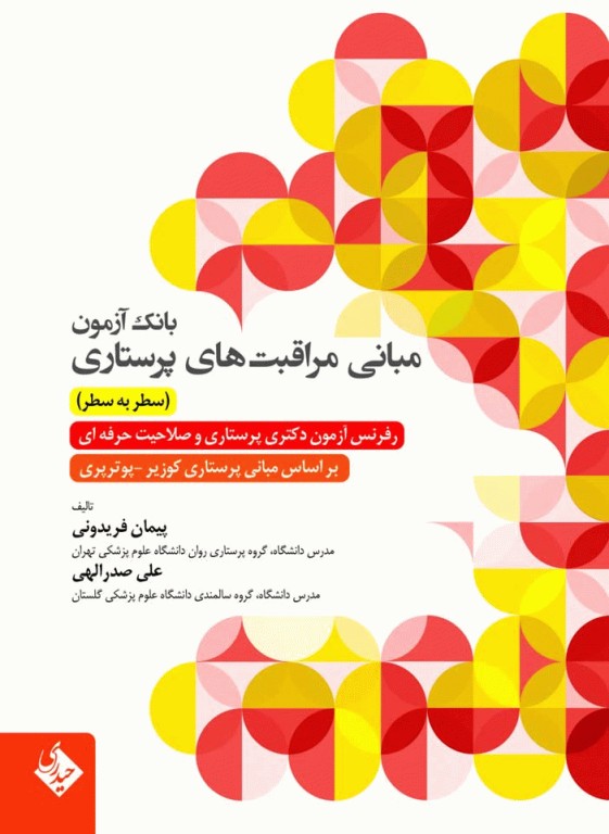 کتاب بانک آزمون مبانی مراقبتهای پرستاری سطر به سطر بر اساس مبانی پرستاری کوزیر و پوترپری تالیف پیمان فریدونی، علی صدرالهی توسط انتشارات حیدری به چاپ رسیده است. کتاب بانک سوالات آزمون جامع مبانی مراقبت های پرستاری که بر اساس سرفصل اعلام شده شورای عالی برنامه ریزی معاونت آموزشی علوم پزشکی وزارت بهداشت تهیه و تالیف شده است مشتمل بر 53 فصل میباشد. این مجموعه با توجه به رویکرد بالینی و علمی، مرجعی مناسب برای شرکت در آزمون صلاحیت حرفهای پرستاری و آزمون ورودی دکتری پرستاری است.