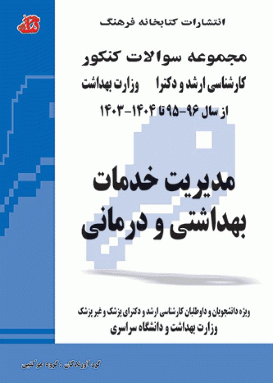 کتاب مجموعه سوالات کنکور مدیریت خدمات بهداشتی و درمانی شامل سوالات آزمونهای کارشناسی ارشد و دکتری وزارت بهداشت سالهای 95 تا 1403 با پاسخ کلیدی تالیف و گردآوری گروه مولفین چاپ نشر کتابخانه فرهنگ میباشد. آزمون ارشد شامل دروس : کلیات بهداشت، اصول و مبانی سازمان و مدیریت، سازمان مدیریت بهداشت و درمان، مدیریت مالی و اقتصاد بهداشت، زبان عمومی و آزمون دکتری شامل دروس: تئوریهای مدیریت، برنامه ریزی در نظام بهداشت و درمان، آمار زیستی، سازمان و مدیریت بهداشت و درمان، اقتصاد بهداشت و درمان میباشد.