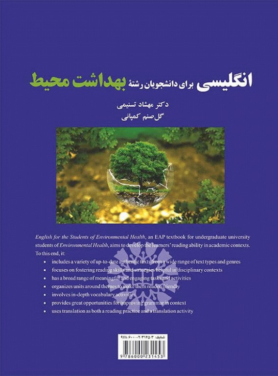کتاب انگلیسی برای دانشجویان رشته بهداشت محیط با نام انگلیسی English for the Students of Environmental Health تالیف دکتر مهشاد تسنیمی و گلصنم کمپانی و در نشر سمت چاپ شده است. فهرست کتاب به شرح زیر است.