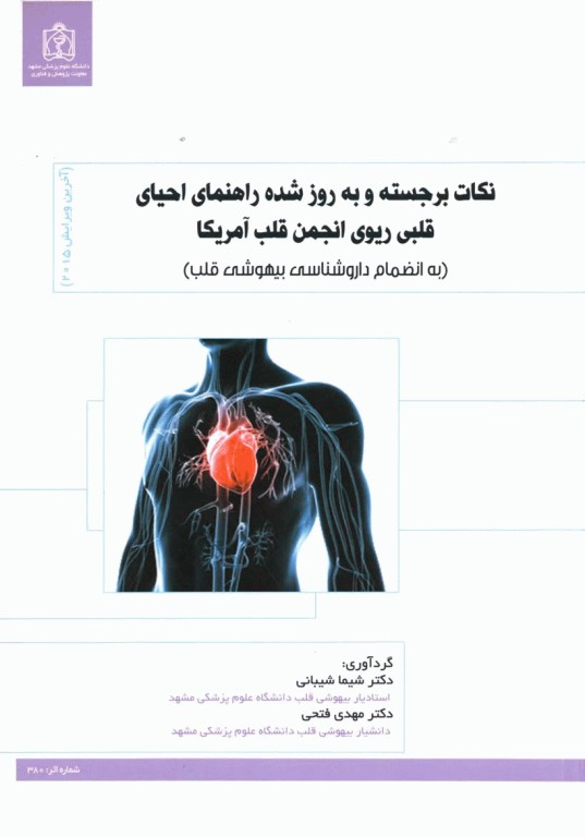 در کتاب نکات برجسته و به روز شده راهنمای احیای قلبی ریوی انجمن قلب آمریکا تألیف دکتر شیما شیبانی و دکتر مهدی فتحی انتشارات دانشگاه علوم پزشکی مشهد منتشر شده هدف از بازنگری ارتقای اثربخشی اقدامات احیا و بدنبال آن افزایش حیات بخشی به قلب، ریه و مغز است. در این میان نقش انجمنهای علمی تخصصی در تدوین راهکارهای عملی بسیار مهم است تا با تکیه بر مطالعات چند مرکزی بزرگ وکار آزماییهای اصولی، کارآمدی الگوریتمهای جدید را تضمین کنند.